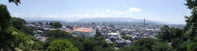 (写真:春日城跡から撮影した伊那市内=16日撮影、640×148拡大可能)