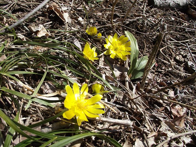印象的だったのは、伊那市富県(とみがた)にある「一夜の城」に、春の訪れを伝える福寿草が咲いていたこと。福寿草といえば、以前勤務していた松本市の北、四賀・赤怒田にある福寿草群生地が有名ですが、これまで早いと思っていたその福寿草ですら咲き始めるのは3月中旬で、北信ともなるとまだまだずっと先のこと。