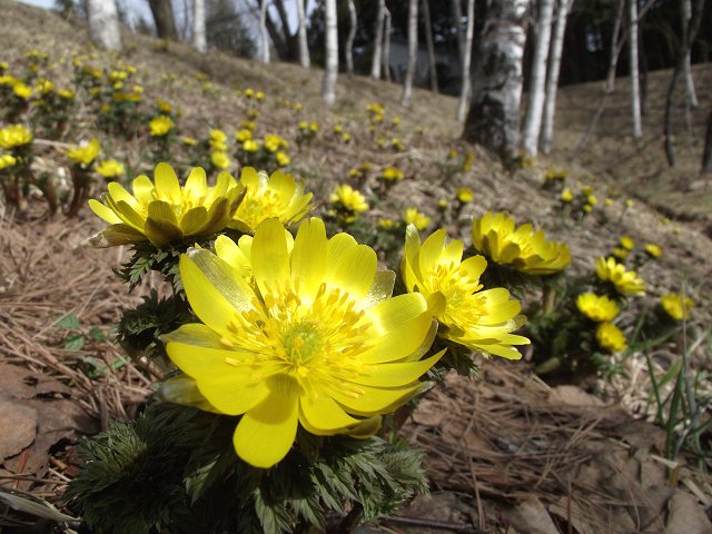 写真は20日の休日に駒ヶ根高原大沼湖畔(地図)を訪ねた際に撮影した福寿草の様子。長い冬を過ごし、黄色の花を咲かせる福寿草は春の訪れを伝えるこの時期を代表する花。然しながら、今年は桜へのバトンが早すぎて、注目度もいまひとつ。元気に咲く小さな花たちもぜひご覧ください。