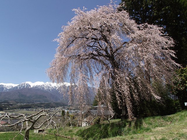移りゆく伊那谷の風景を、たった一本で見守り続けるこのシダレザクラも、先人が残してくれた貴重な財産といえるかもしれませんね。