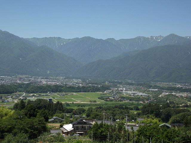 さて、写真は以前も紹介しました駒ヶ根市のふるさとの丘から撮影した駒ヶ根市内と中央アルプスの山並みです。千畳敷を中心とした写真をこれまで何枚かこのブログにも掲載してきましたが、今回、たまたま近くを仕事で訪れる機会がありましたので撮影してみました。青い空を背景に広がる中央アルプスの山並みと天竜川沿いに広がる緑の田畑の様子はまさに伊那谷の原風景。夏休みを利用して信州を訪れる観光客のみなさんにもぜひおススメしたいスポットであったりします。