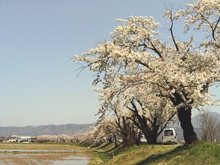 写真は、前回、松本に勤務していた頃に撮影(平成12年4月)した梓川堤防のサクラ並木。当時のサクラは枝ぶりも立派で、花などは満開ともなれば今にもこぼれ落ちるのではと思うほどで、延々と続くサクラ並木は、それはそれは立派なものでした。
