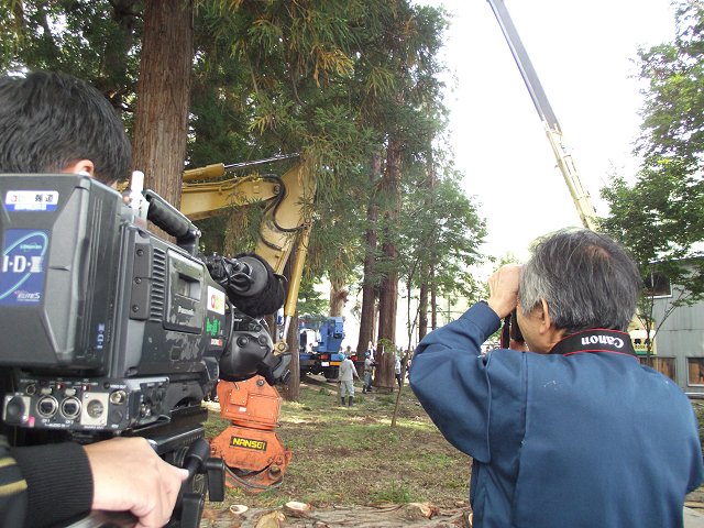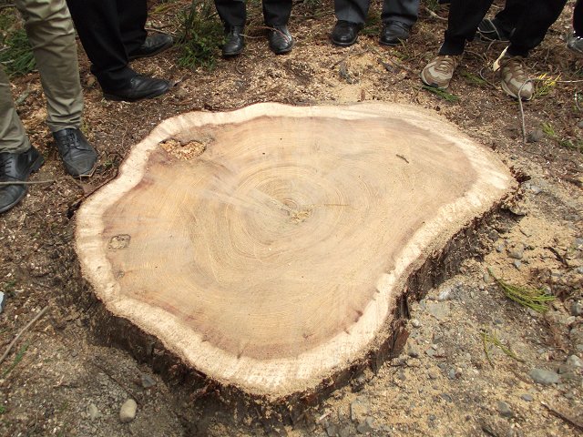切り倒された2本の木は、10月11日と12日に行われる真田十万石まつりで公開され、その後に製材というのでしょうか、規格のサイズに整えられるそうです。