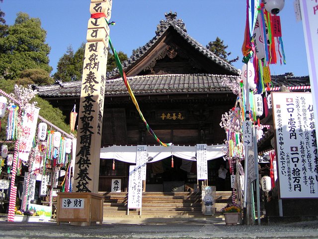 このような経緯もあり、ここ元善光寺でも、長野市の善光寺同様に「御開帳」が行われています(同時開催は、このほかに甲斐善光寺・祖父江善光寺)。境内には、「回向柱」が立ち、御本尊と「善の綱」で結ばれている様子は長野市の善光寺と全く同じ。「遠くとも一度は参れ善光寺」とはいうものの、なかなか長野市まで出かけられないという人も、善光寺と同じように阿弥陀如来さまと結縁できるようになっています。 (写真=11日撮影、640×320拡大可能)