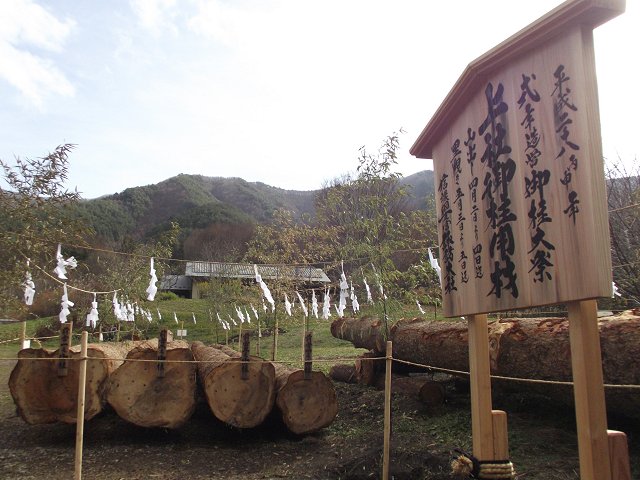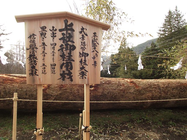 | 諏訪大社御柱祭 上社御用材 (上伊那郡辰野町横川のかやぶきの館) |