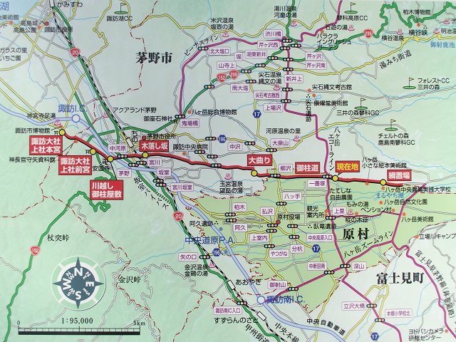 | 諏訪大社上社御柱の曳行ルート (諏訪郡原村・平成28年2月11日撮影) |