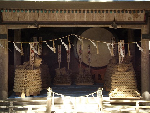 | 奉納された「本宮二」の綱 (諏訪大社上社本宮) |