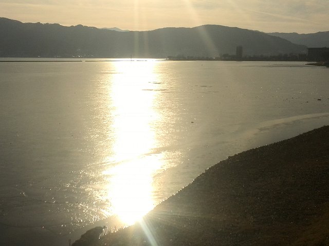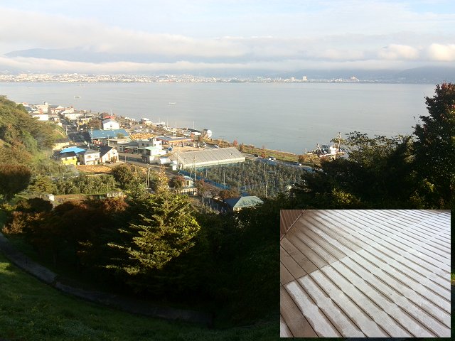 (写真:諏訪市の立石公園から望む諏訪湖=5日午前撮影、640×480拡大可能)