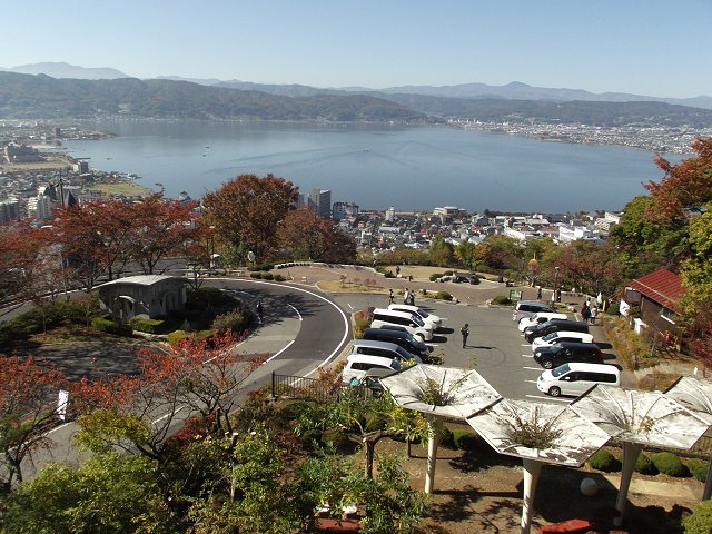 | 高島公園の秋 (右下:神事の準備が行われている諏訪市役所) |