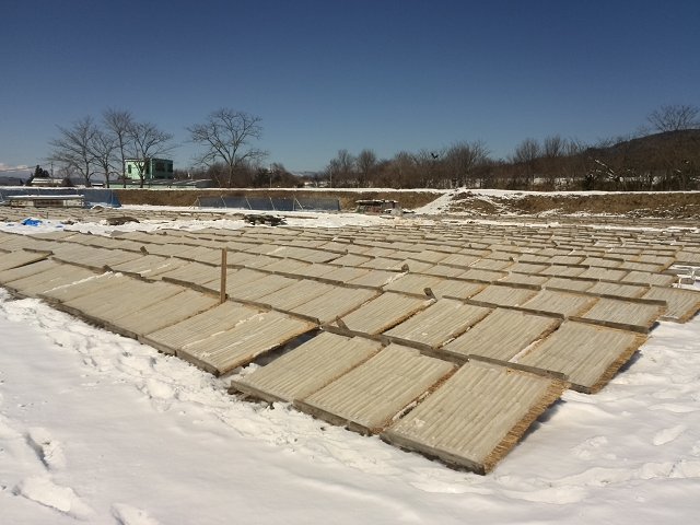 茅野市宮川のD2のあるところを山側に進み、宮川を渡ったあたりにたくさん干してありました。伊那でも寒天の天日干しを確かやっていたような…。