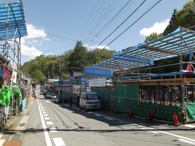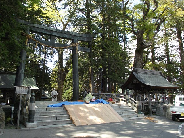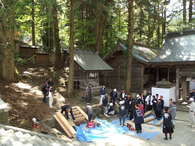 5月3日から始まる里曳きに向けて、諏訪大社上社本宮では御柱を迎え入れる準備が進められていました。