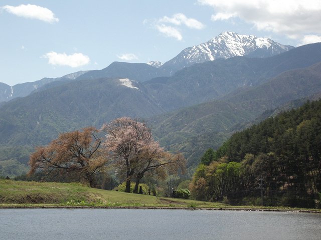 | 田端鼎談桜と甲斐駒ケ岳(左は昨年) | |