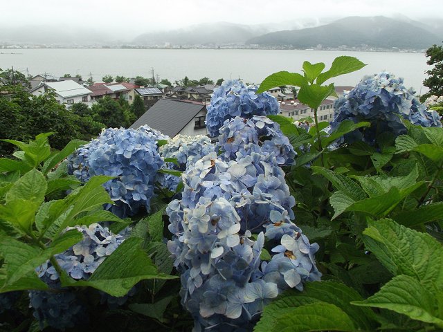 (写真:岡谷市湊の小坂観音院に咲くあじさいの花=9日午前撮影、640×480拡大可能)