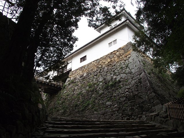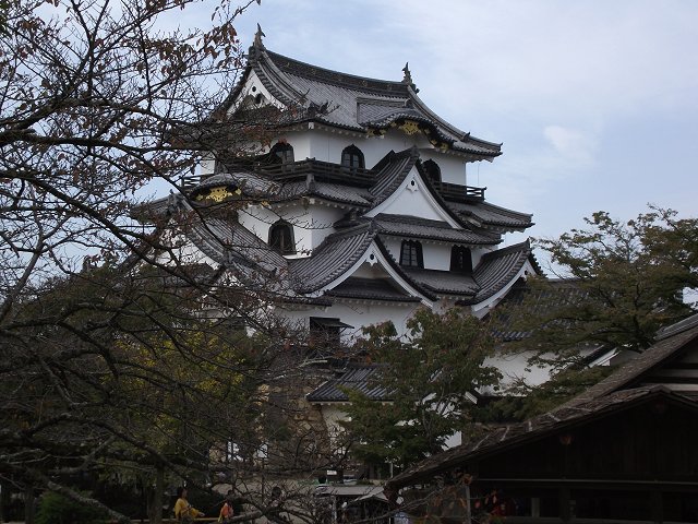 天秤櫓を抜けて更に坂を上ると太鼓門櫓、そして天主。彦根城の天守は、大津城から移築されたとも伝えられ、明治初期の廃城令を免れた国内に現存する4つの天守のひとつ。ただ、実戦のための城という位置づけは黒一色で板張りの壁の松本城(長野県松本市)と同じですが、最上階には外回り縁や高欄が設けられており、戦時期と安定期とが折衷した独特な趣きを見ることができました。