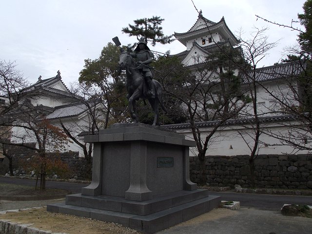(写真:大垣城天守・西門と戸田氏鉄公騎馬像=平成23年11月3日午後撮影、640×480拡大可能)
