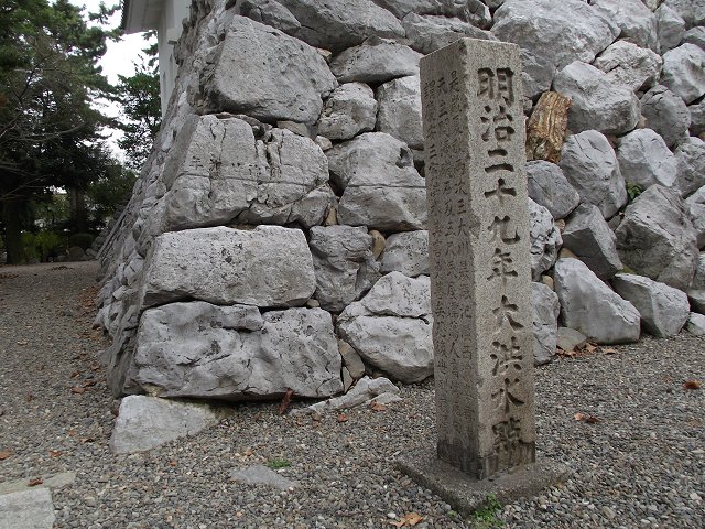 この大垣城石垣の刻まれたのがその水位であり、この惨状を後世に伝えるため大垣の金森吉次郎が私財を投じて建てたのが、この洪水碑である。