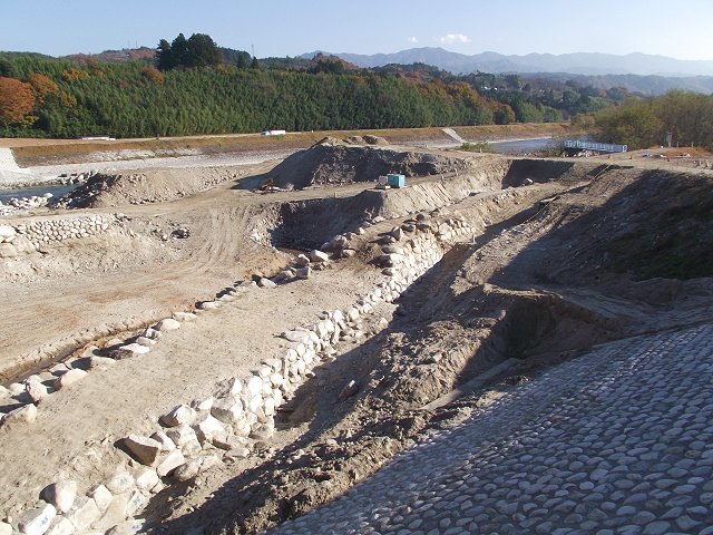 今月13日には現地説明会などが行われ、担当する学芸員さんによれば、新たに発見された堤防は既存堤防の改修に留まっていた、とこれまで考えられてきた定説を覆す貴重なものとなった、という説明があったようです。新聞記事でもこれを取り上げていましたが、読み手からすると、文章だけでの説明では、少々、わかりづらい面があったように思います。これまで確認されていた堤防や、今回新たに発見された堤防の配置や関連性などを図に示してもらえれば、当時の治水がどのような変遷を辿って行われてきたのか、理解し易いように思いました。公表される研究成果に期待したいと思います。