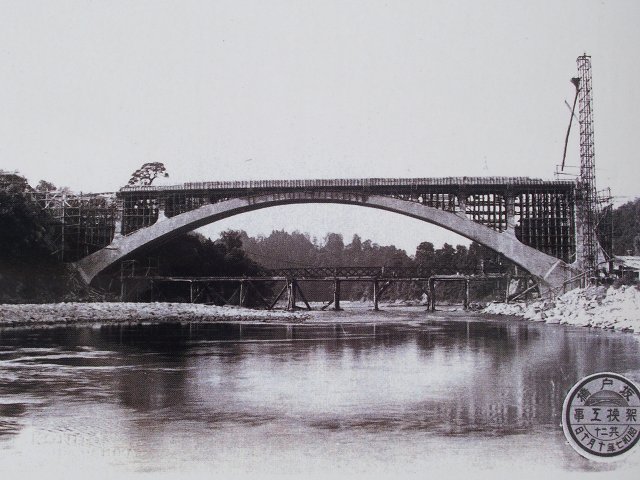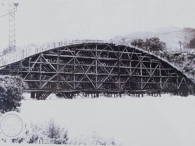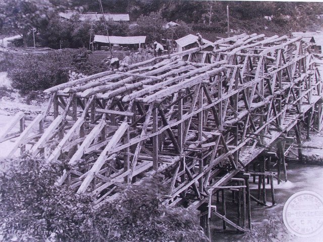 橋長七十八メートル幅員五・五メートルの鉄筋コンクリートアーチ橋が八萬圓で完成し当時は東洋一の規模を誇った。平成三年(一九九一)老朽化に伴い補修の調査設計を行い翌年から平成六年度に工事をした。