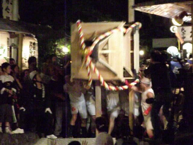 | 御輿のお練り | 粉砕された神輿の破片を高々掲げ… |