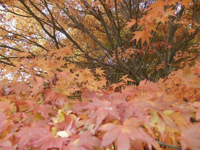 上伊那郡箕輪町の箕輪ダム(地図)周辺では、赤く染まった1万本といわれるもみじの盛りが過ぎようとしています。鑑賞はお早めに。 (写真=13日撮影、全て640×480拡大可能)
