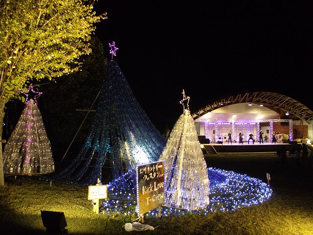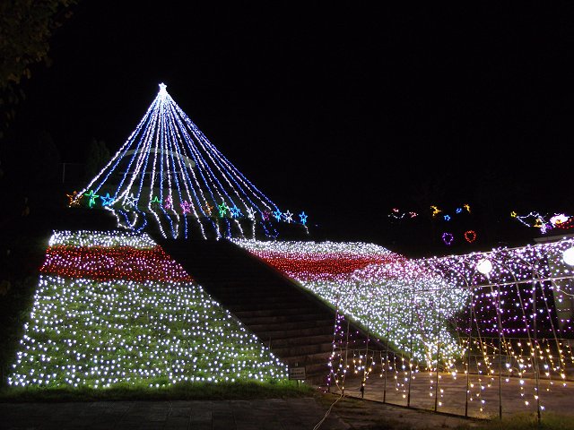 上伊那郡飯島町の与田切公園(地図)で開催されている「光のファンタジー2013 信州イルミネーションフェスティバルin与田切公園vol.4」から。イベントは10月13日まで。入場無料。 (写真=11日撮影、640×480拡大可能)