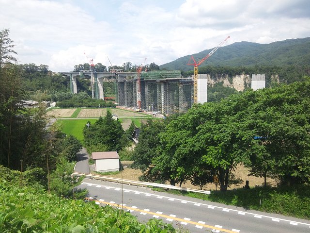 (写真:飯島町本郷から撮影した伊南バイパス1号橋=3日撮影、640×480拡大可能)
