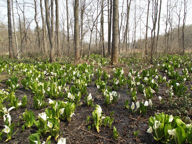 (写真:大久保池に咲くミズバショウ=4月26日午前撮影、640×480拡大可能)