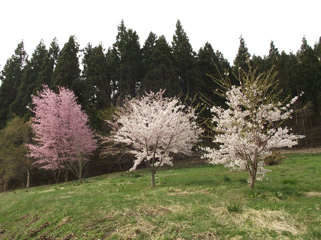 オオヤマザクラはちょうど見ごろ、シダレザクラは散り始めといった状況で、昨年よりも開花がやや早めに進んだように感じました。
