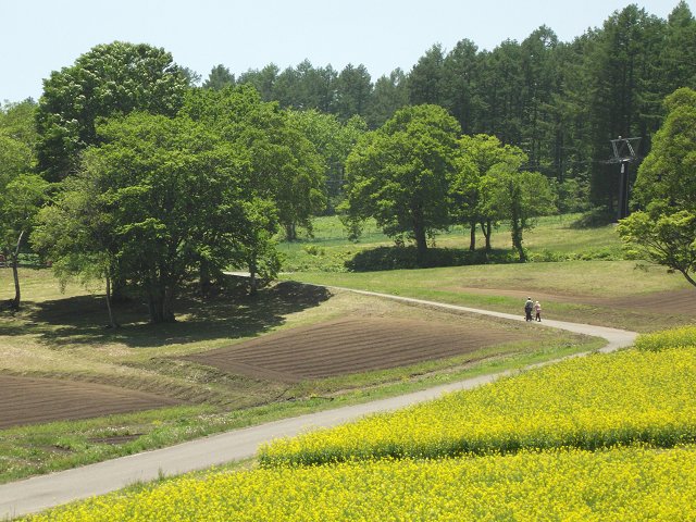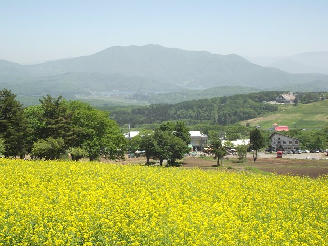 全長380mのペアリフト(大人往復500円、小学生往復300円、今年は6月8日まで運行)終点周辺では菜の花も満開。
