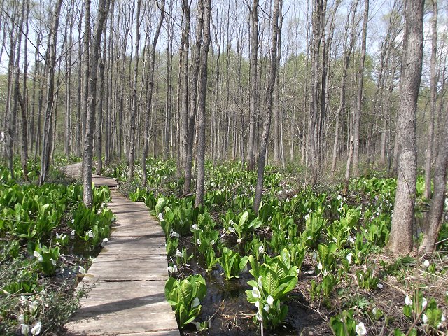 (写真:大久保池のミズバショウ=8日午後撮影、640×480拡大可能)
