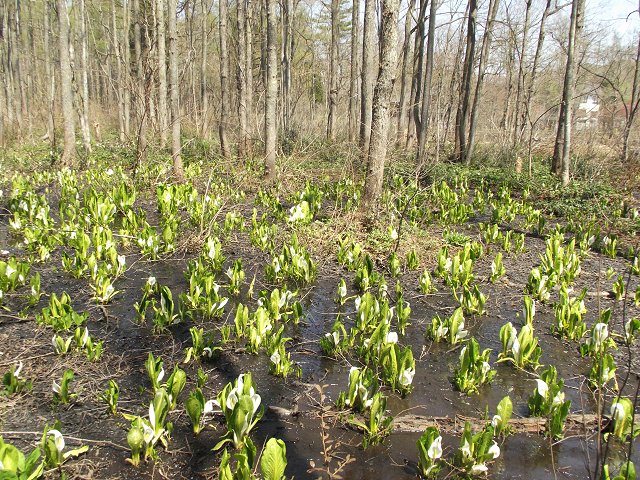 (写真:大久保池に咲くミズバショウ=4月26日午前撮影、640×480拡大可能)