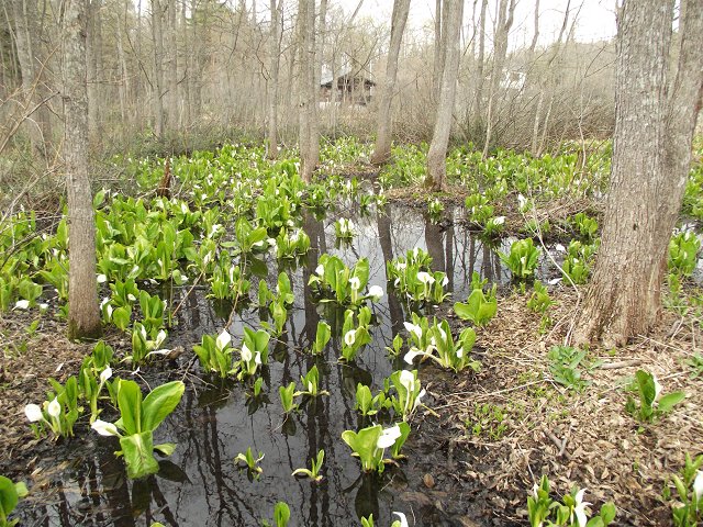 (写真:大久保池のミズバショウ=8日午後撮影、640×480拡大可能)