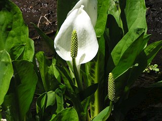 ただ、写真のミズバショウは元気でしたが、ほかはかなりくたびれ気味…。見ごろは先月下旬ころだったかもしれませんね。(写真=6日撮影)