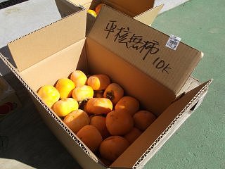 上水内郡小川村の農産物直売所「さんさん市場」(地図)に、干し柿用の「平田柿」が並び始めました。値段は10キロ前後で例年並みの1000円から1500円ほど。詳しくはお店でご確認ください。 (写真=6日撮影)