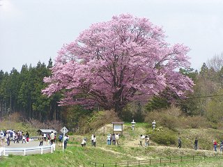 飯綱町地蔵久保(地図)にあるオオヤマザクラ(大山桜)が満開です。(写真=27日撮影)