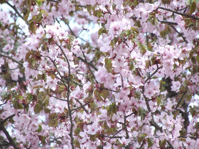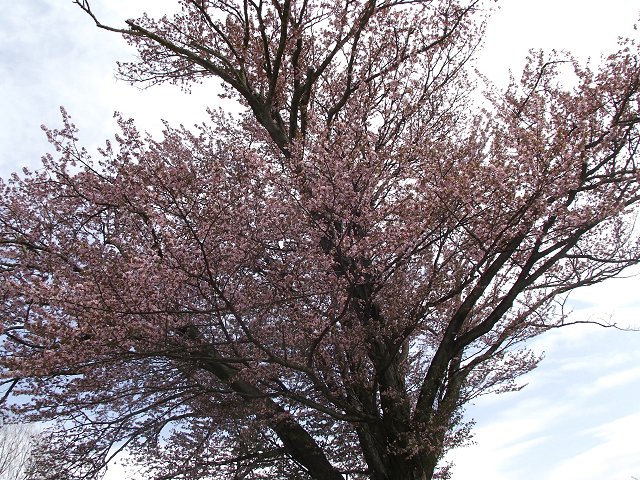 寒い日が続いたため、見ごろは連休明けくらいと思っていましたが、訪ねてみるとすでに陽の当たる南側は葉桜に、辛うじて北側に花が見られる程度となっていました。