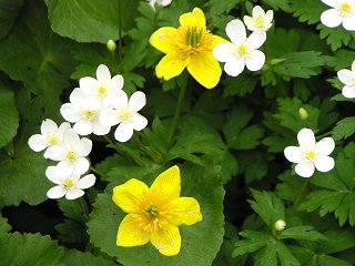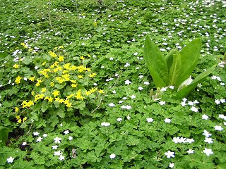| ニリンソウ(白)とリュウキンカ(黄)の群生 | |