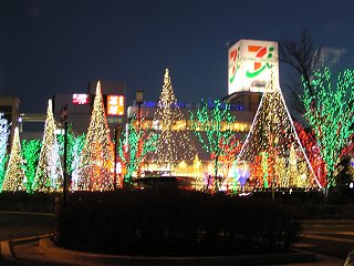 上田駅お城口のイベント広場(地図)で今月31日まで開催されているイルミネーションの様子です。 (写真=16日午後5時21分撮影)