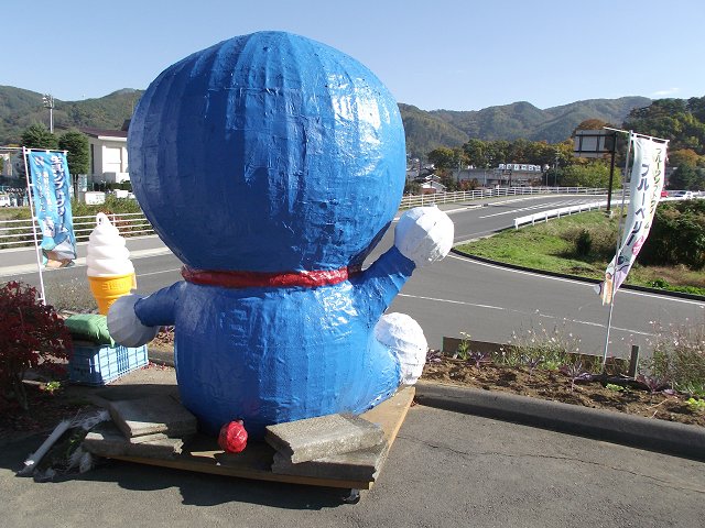 上田市丸子御嶽堂にある農産物直売加工センターあさつゆ(地図)では、敷地内に色鮮やかなドラえもんが置かれ、訪れる買い物客の注目を集めています。 (写真=7日撮影、640×480拡大可能)