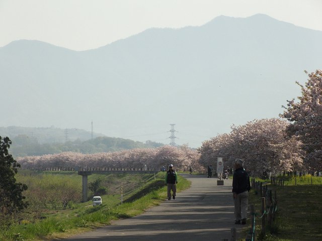 (写真:千曲川ふれあい公園・千曲川堤防 桜堤=4月25日午前撮影、640×480拡大可能)