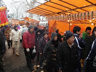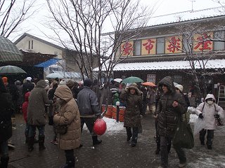 上高井郡小布施町で14日と15日の2日間、皇大神社(地図)を中心とする町内各所で「安市」が開催され、神社参道に軒を連ねる露店で福だるまや縁起物の熊手などを買い求める人たちで賑わいました。 (写真:「小布施・安市」から=15日撮影、640×480拡大可能)