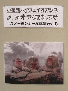 上高井郡小布施町にある小布施ハイウェイオアシス 道の駅オアシスおぶせでは、下高井郡山ノ内町の地獄谷野猿公苑に生息するニホンザルを撮影した「スノーモンキー写真展」の一部が開催されています。苑内の温泉に浸かるサルたちの、なんとものんびりした表情をご覧ください。