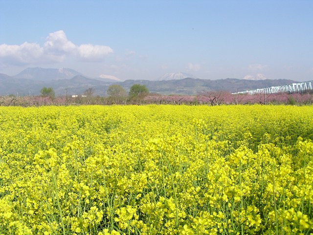 上高井郡小布施町山王島(地図)にある「千曲川ふれあい公園」では、花桃や八重桜、黄色の菜の花などが満開となり、北信五岳(飯綱山・戸隠山・黒姫山・妙高山・斑尾山)の山並みを背景に、春の風景を撮影するカメラマンで賑わっています。 (写真:千曲川ふれあい公園から望む妙高山=1日撮影、全て640×480拡大可能)