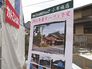 かんてんぱぱショップは、長野県内では伊那市のほか、長野市内に2店舗が営業しており、小布施店は北信地方で3店舗目となります。 (写真:「緑のかけ橋祭り・秋の味覚祭に出店したかんてんぱぱショップのブースに掲げられていた案内から=24日撮影)