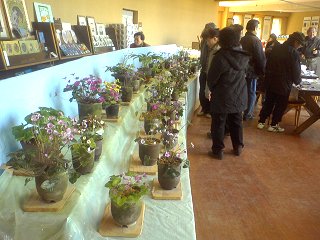 小布施町の千曲川ハイウェイミュージアムで14日と15日の2日間、北信山野草の会のみなさんが育てた雪割草や山野草を展示する「雪割草と早春の山野草展」が開かれました。 (写真=15日撮影)
