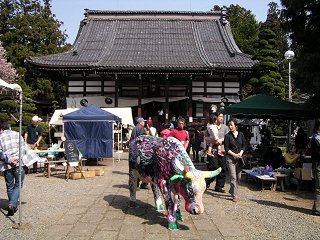 上高井郡小布施町の玄照寺(地図)では、17日と18日の2日間、「境内アートOBUSE×苗市」が開催され、全国各地から集まったさまざまなジャンルのクリエーターが、自慢の作品を披露しました。 (写真=18日撮影)