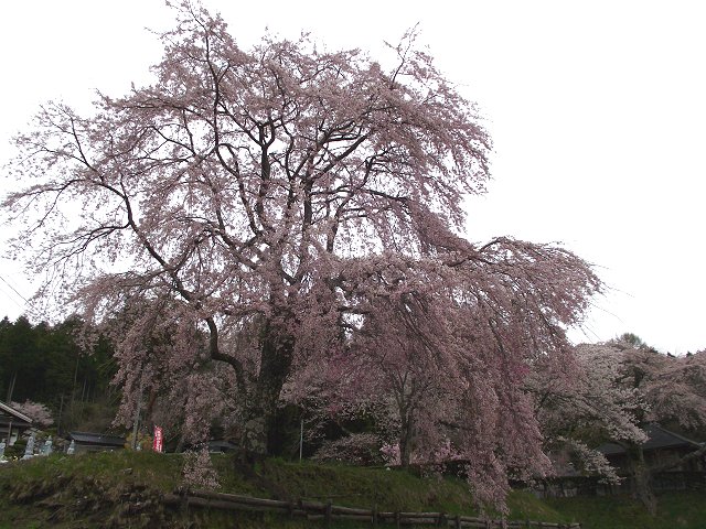 近くの観音堂に咲くエドヒガンザクラ(観音桜)は村天然記念物。