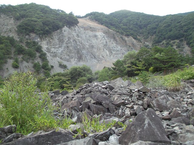 この崩壊は、中央構造線が侵食されてできた谷底に向かって急傾斜に耐えられなくなった岩盤が崩れ落ちたものです。