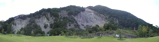 崩壊の前は、今の公園や小渋川になっている場所には人家は無く、平らに水田が広がっていました。小渋川は山すその岩石園や観音様の下を流れていました。崩れ落ちた岩塊が積み重なって台地ができました。崩れた岩盤の体積は320万~420万立方メートルと見積もられています。