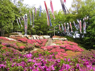 つつじの名所で知られる下伊那郡松川町の台城公園(地図)で3日、恒例の台城つつじ祭りが行われました。 (写真=3日撮影)